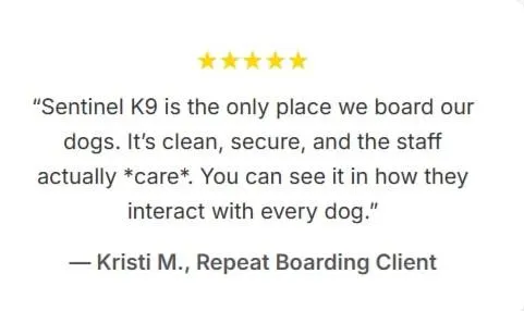 When you work with Sentinel K9, you’re partnering with a dedicated facility that’s invested in your dog’s success and your peace of mind—every step of the way.